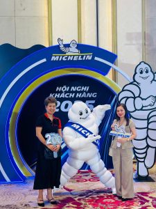 Không khí trở nên rộn ràng hơn khi linh vật Michelin xuất hiện, mang lại những khoảnh khắc vui nhộn, đáng nhớ cho khách hàng và đội ngũ tổ chức.